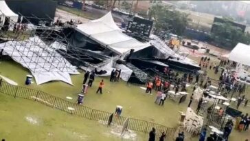 Singer Joseph Mayanja also known Jose Chameleon’s ‘Gwanga mujje’ concert stage has fallen down.