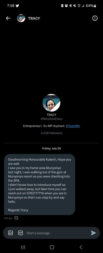 Kateshumbwa’s twitter handle was hacked today morning and the person that hacked it posted all the perry messages in his inbox.