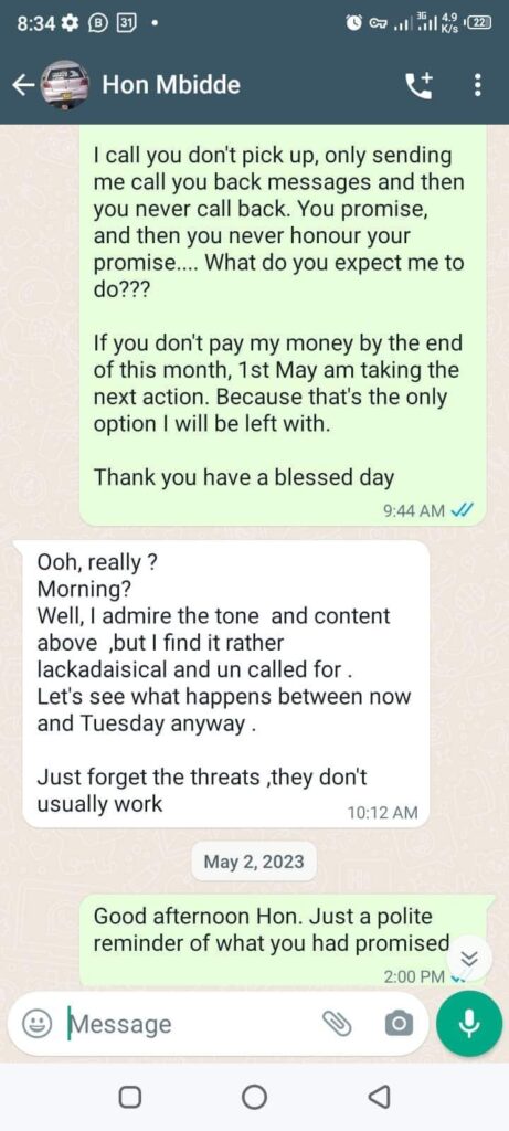 This guy has made a number of promises about the clearing of the bal but non has been honoured. These days he even stopped responding to my whatsup messages and for the calls, he actually doesn’t pick them. Unless when I change numbers. I have tried all I could but he has refused to help me pay my ka money