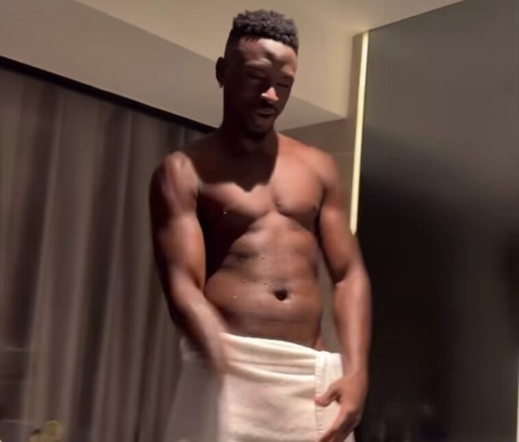 The singer was just wrapped in a towel and had no boxers underneath. The ladies started talking in tongues with most of them wishing the towel could fall off.